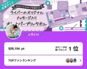 弊社所属ライバーのろいがPococha主催イベント「ファミリーにメッセージを送ろう!ライバーのオリジナルメッセージ入りオトナパープルタオル」A1~A3の第1ブロックにて1位入賞いたしました。
