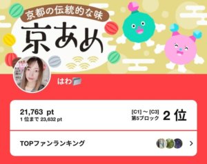 弊社所属ライバーのはわがPococha主催イベント「京都の伝統的な味♪京あめ」C1~C3の第5ブロックにて2位入賞いたしました。