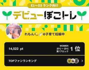 弊社所属ライバーのれもんがPococha主催イベント「デビューぽこトレ」E1~D1の第7ブロックにて1位入賞いたしました。