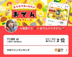 弊社所属ライバーの小鳥遊ぐりがPococha主催イベント「おうちであったか♪おでんプロフィール」C1~C3の第8ブロックにて2位入賞いたしました。