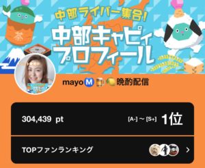 弊社ライバーであるmayoが「中部ライバー集合!中部キャピィプロフィール」A-~S+ブロックにて優勝、およびボン「デビューぽこトレ〜男性編〜」D〜D+第2ブロックにて3位でに入賞いたしました。