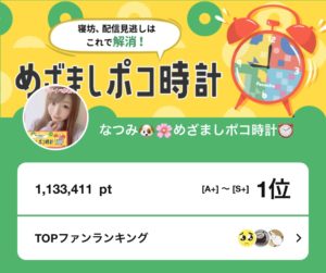 弊社専属ライバーであるなつみが「寝坊、配信見逃しはこれで解消!めざましポコ時計」A+~S+にて優勝、三浦みゅらが「配信の紹介に大活躍!Pococha革製名刺ケース&オリジナル名刺100枚!」B-~Aにて2位に入賞いたしました。
