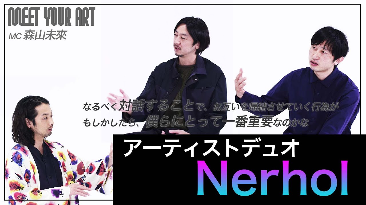 飯田竜太(1981年生まれ)と田中義久(1980年生まれ)の二人からなるアーティストデュオ。それぞれの活動を展開していた二人は、現代においていかにして問題を提起し、人に伝えていくかという方法論において共通項を見出し、2007年よりNerholを結成。書物やそこに記された文字、世界に存在する図像の定型を異化する探究に始まり、2011年、数分間かけて200カット以上撮影したポートレートを束ねて彫刻することで生み出される歪んだ人物像の立体作品《Misunderstanding Focus》を発表し、大きな注目を集める。その後、国内外の美術館やギャラリーの展覧会への参加を重ね、街路樹、動物、水、ネット空間にアップされた画像データや記録映像等、様々なモチーフを選びながら、それらが孕む時間軸をも歪ませるような作品を制作。一貫して、日常の中で見落としがちな有機物が孕む多層的な存在態を解き明かすことを試みている。近年では、物理学者や生態学者との対話から自作の姿や制作行為を顧みることで、作品がもつ各要素を開放し、あらたな作品形態へと展開させている。