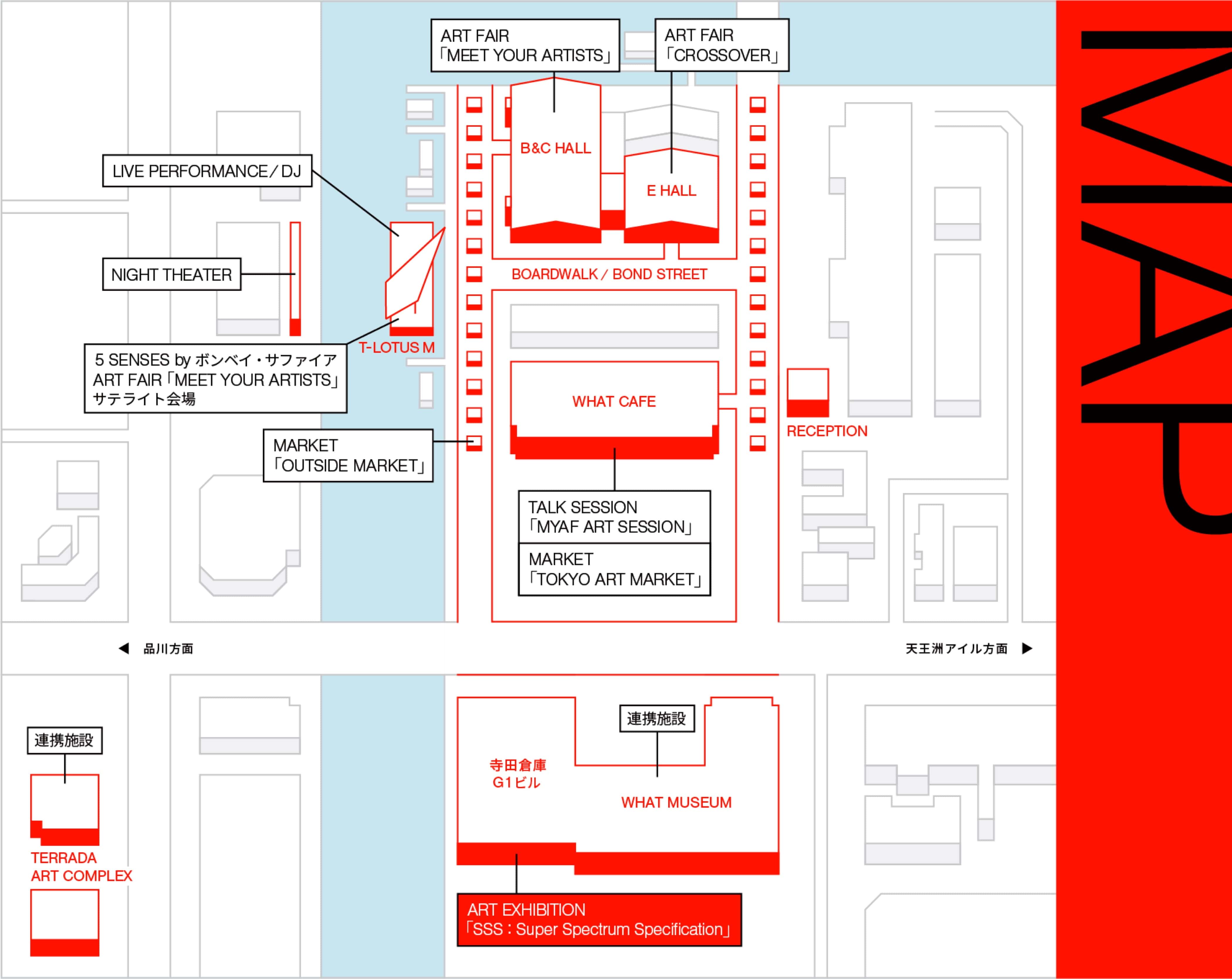 MYAF2024のテーマ「NEW ERA」を受け、山峰潤也監修のもと、吉田山、呉宮百合香、堤拓也の3名のキュレーターが、国内外のさまざまな表現形式のアーティストとのコラボレーションにより、抽象化した現代都市の多様な側面を組み合わせながら提案する展覧会「SSS: Super Spectrum Specification」を開催します。