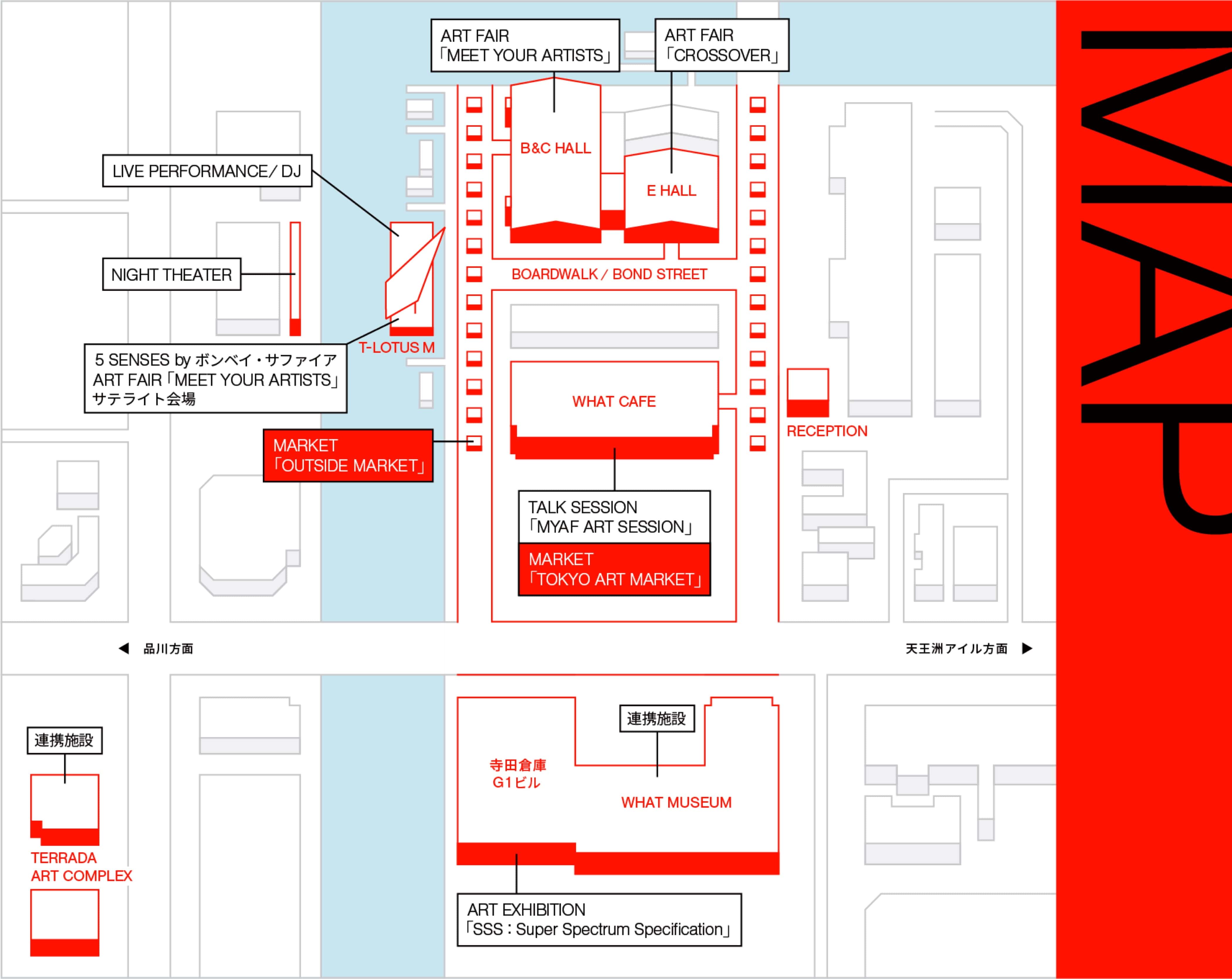 MYA2024ではファッション/ライフスタイル/フードなどのショップが全国から集結し、スペシャルフードメニューや、フェスティバル限定アパレルグッズ、ワークショップなどさまざまなカルチャー体験を提供する「OUTSIDE MARKET」と、アートグッズやZINEを取り扱うショップを中心に40店舗以上が集結し、より多くの来場者がアートとの接点を持つ機会を設計することを目指す「TOKYO ART MARKET」の2つのマーケットを同時開催。