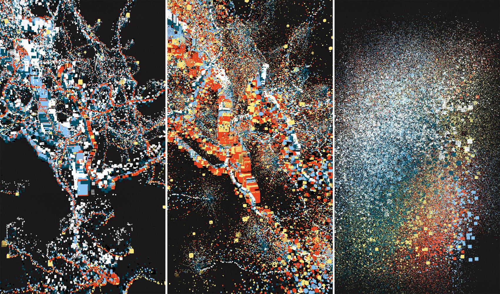 mole^3は、オープンデータ、画像、サウンド、ジェネラティブアート、そして木版画を融合させる日本の版画家兼ビジュアルアーティストです。コーディングを版画の一形態と捉え、デジタル出力を物理的な版画と同等に扱うことで、媒体の伝統的な境界を拡張しています。