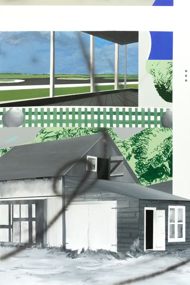 築、景色などをモチーフに用い、複数の時間と視点を持った流動的な絵画空間を構築する。