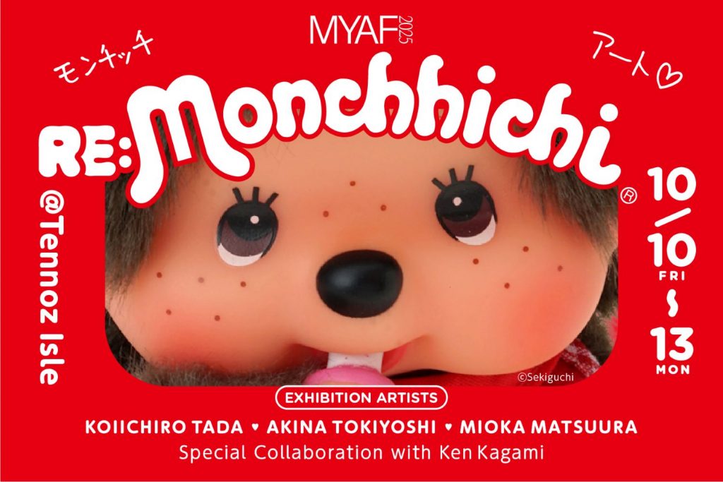 1974年の誕生から昨年で50周年を迎えた〈モンチッチ〉をモチーフに多田恋一朗、時吉あきな、松浦美桜香3名の現代アーティストたちがそれぞれの手法で再解釈し作品発表をします。また、スペシャルコラボレーションとして、モンチッチと同じ1974年生まれの現代アーティスト・加賀美健とのコラボレーション モンチッチをMYAF会場にて限定発売します。
