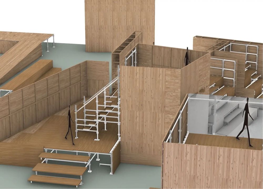 建築集団ガラージュは、会場である天王洲の地形や歴史をリサーチし、機能性と余白を兼ね備えた空間を設計。道や溜まり場・高台が複層的な鑑賞体験を生み出します。