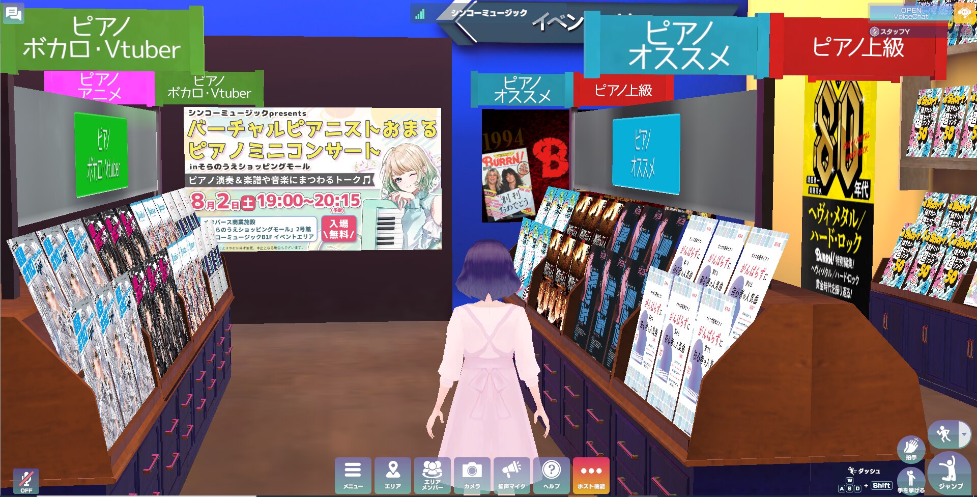 今回は、楽譜の弾き比べなどがあったり、様々な方が楽しめる内容となっております。そらのうえショッピングモールというバーチャル空間は、スマホ1台でも気軽にログインができるので、ぜひぜひ皆様足をお運びいただけたら嬉しいです。