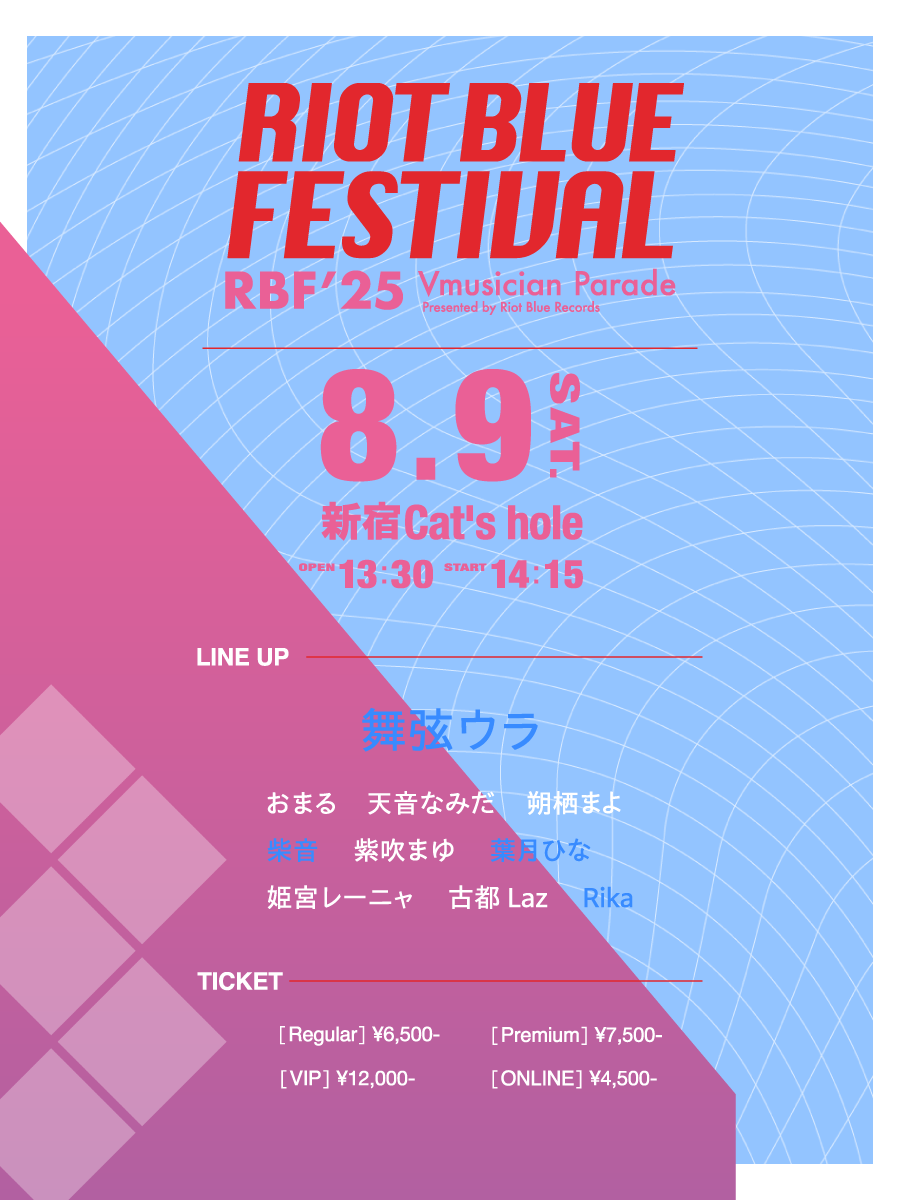 「RIOT BLUE FESTIVAL’25」は、株式会社オクトーバーが主催する、総勢10名のVmusicianが出演するリアルライブ。