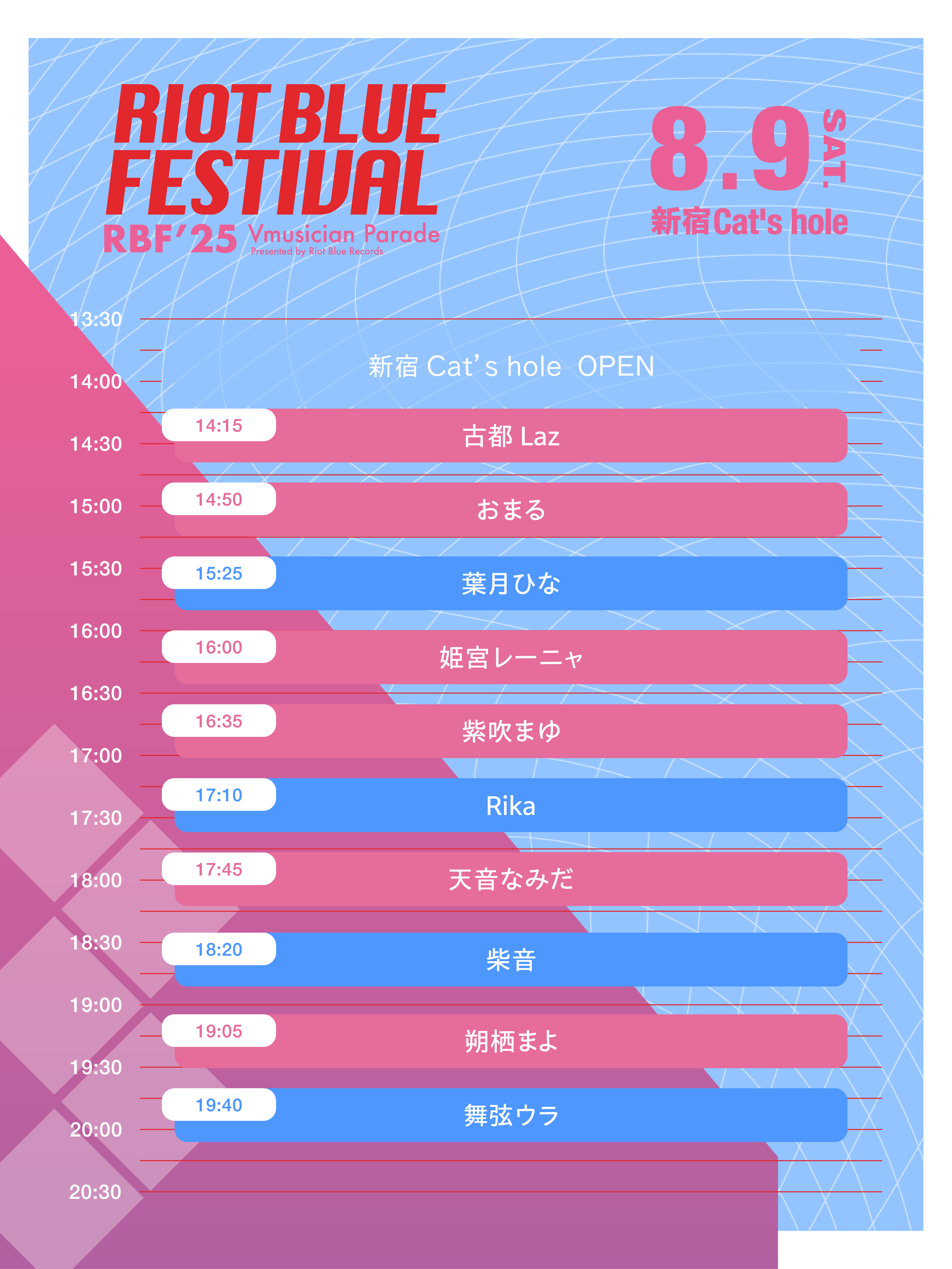 【要田詩織&柴音フルート】【おまる】【紫吹まゆ】8月9日(土)開催、総勢10名のVmusicianが出演する新たなリアル音楽フェス「RIOT BLUE FESTIVAL’25」に出演!