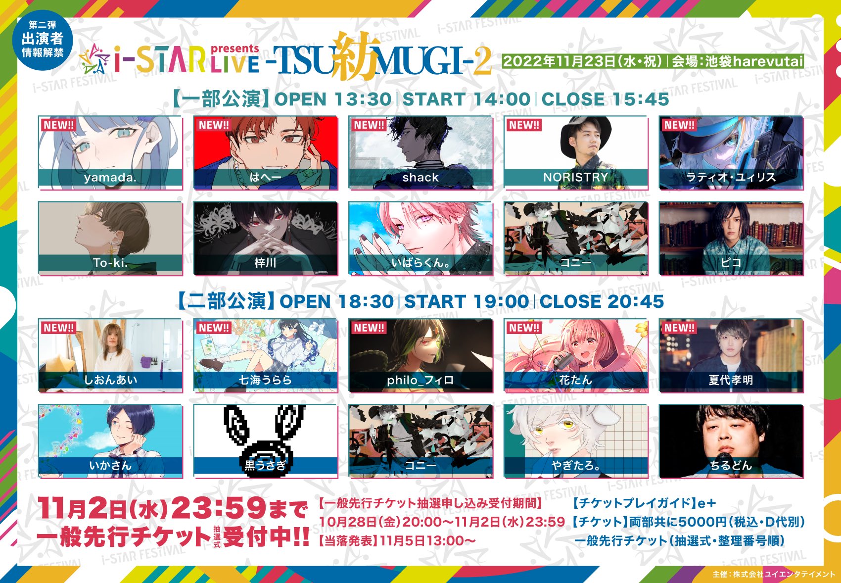 11月23日(水・祝)に池袋harevutaiにて開催されるi-STAR presents LIVE『紡-TSUMUGI- 2』に出演決定‼️