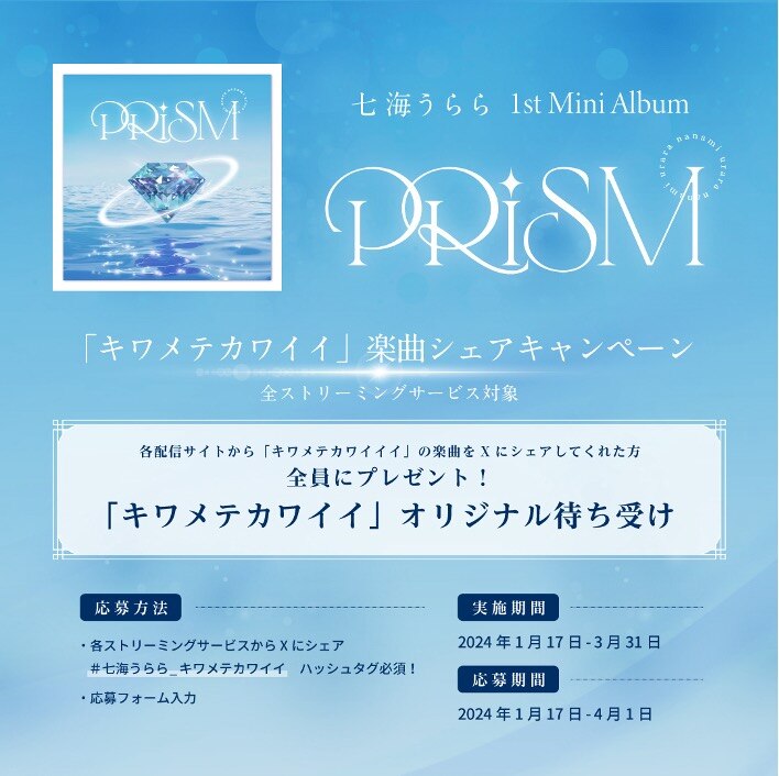 七海うらら「キワメテカワイイ」を全ストリーミングサービスにて期間中にXにシェア頂いた方、全員に「キワメテカワイイイ」オリジナル待ち受けをプレゼント。