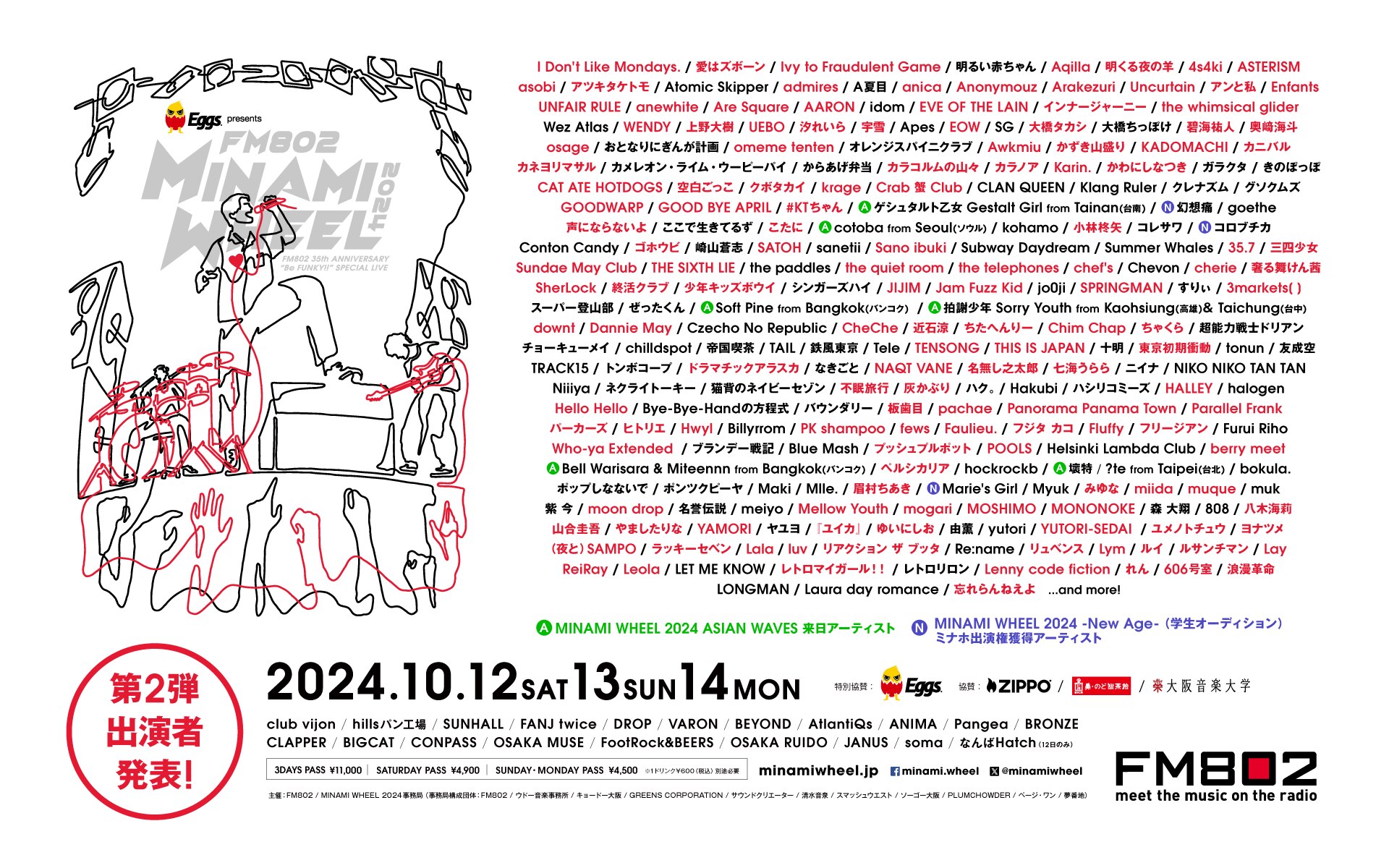 10月12日(土)、13日(日)、14日(月)に大阪・ミナミにて開催される『Eggs presents FM802 35th Anniversary “Be FUNKY!!” MINAMI WHEEL 2024』に出演決定‼️