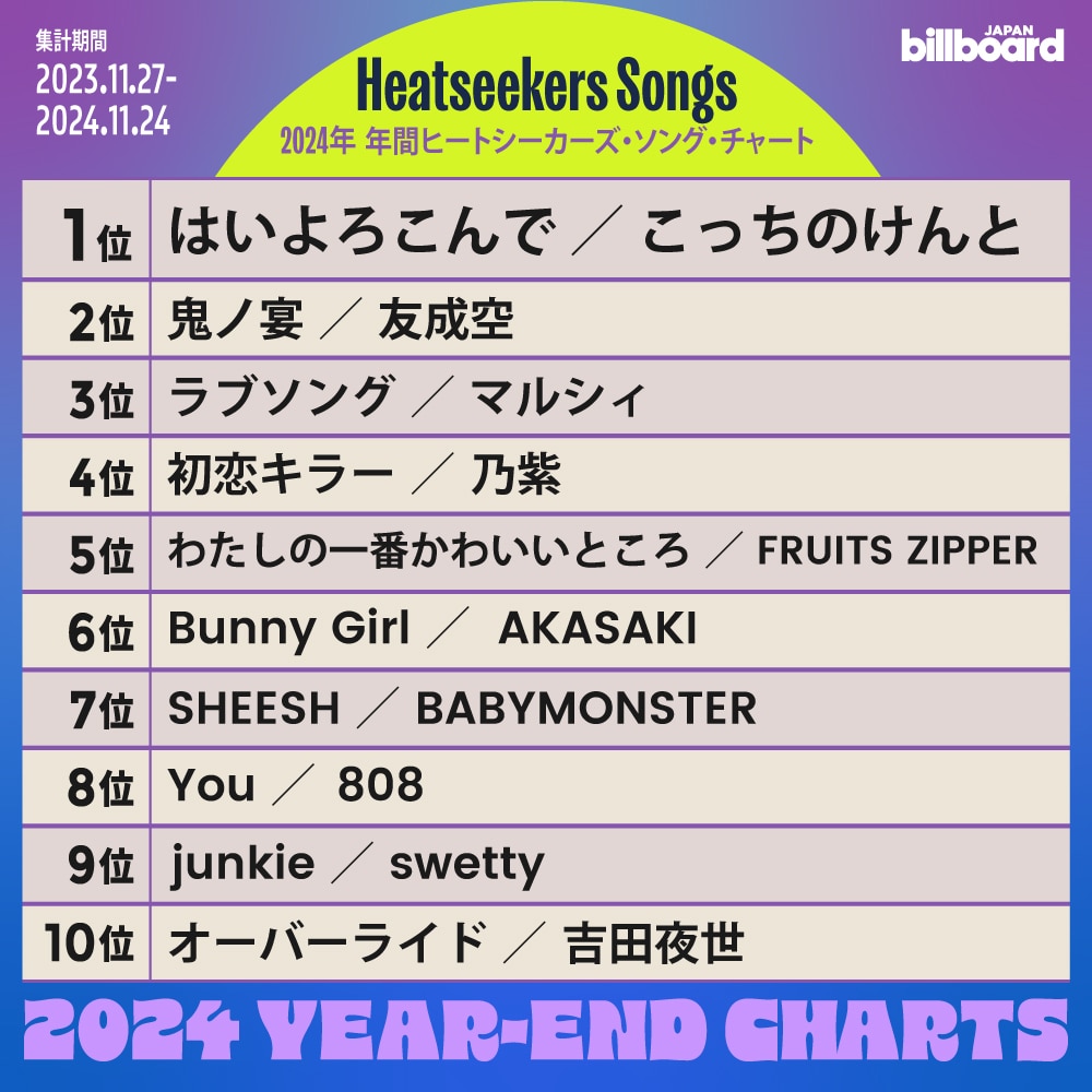 ★ Billboard JAPAN 2024年 年間ヒートシーカーズ・ソング・チャート“Heatseekers Songs” 第2位