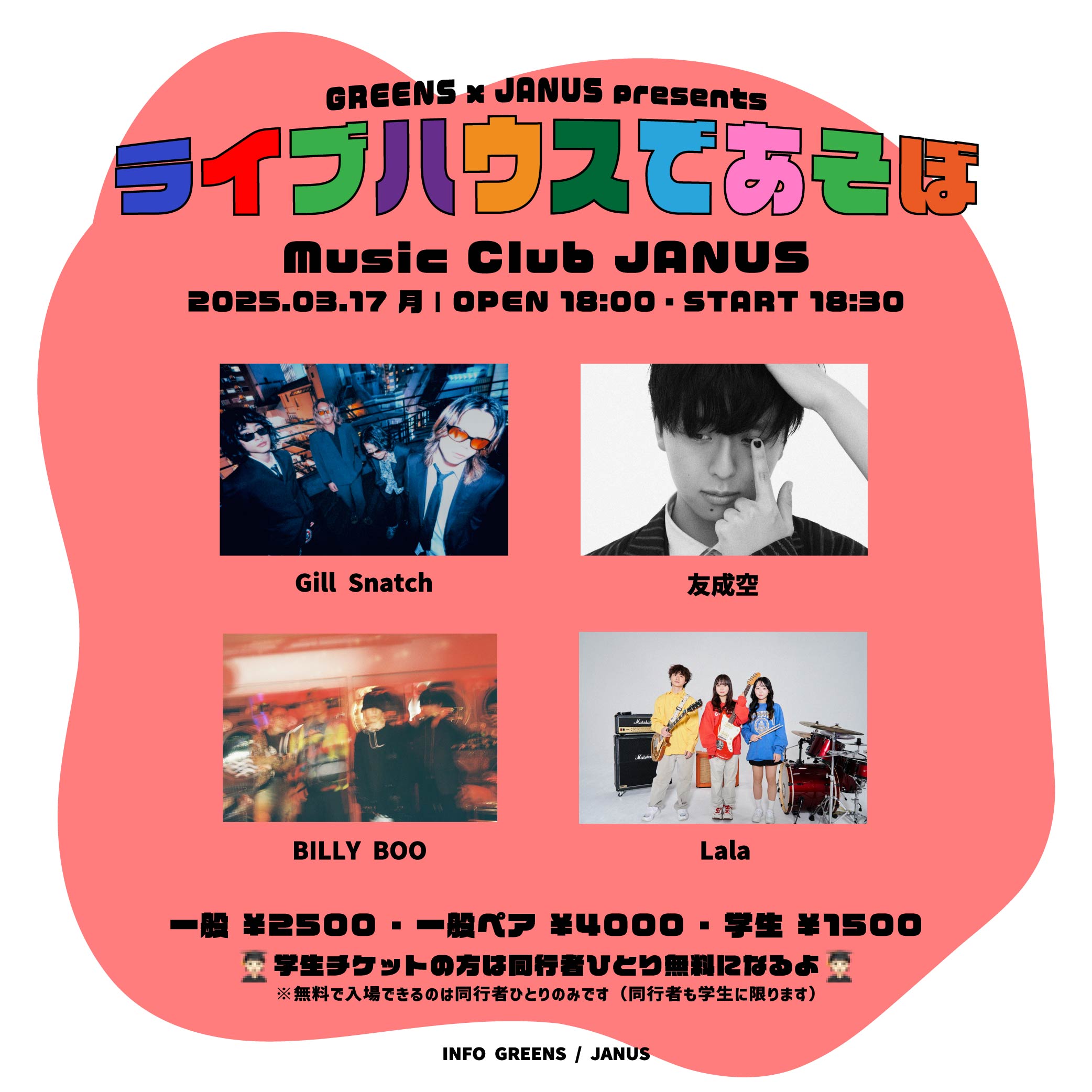 3.17(月) GREENS x JANUS presents 「ライブハウスであそぼ」出演決定!