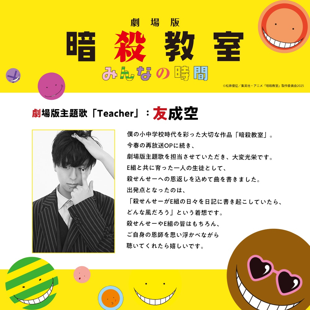 新曲「Teacher」が、2026年3月20日(金)より全国公開される『劇場版「暗殺教室」みんなの時間』の主題歌に決定しました!