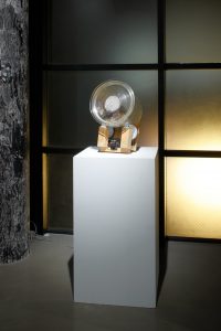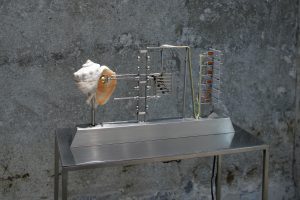 自然の力と機械構造が交差する瞬間に着目し、環境に呼応して動く彫刻作品を制作しています。貝殻や羽根といった生物の抜け殻を用い、自然由来の素材と金属による機械的な要素を組み合わせることで、作品は風や太陽光、雨などの移ろう自然エネルギーを受けながら、揺れ、振動し、かたちを変えていきます。