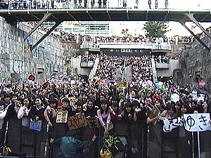 この日DA PUMPを一目見ようと集まったのはなんと18,000人!!夏休みの最後の日曜日に、同じランドマーク内のガーデンスクエアで行われたライヴの時に集まったのが5,000人だから、なんと3倍以上!!
